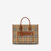 Product Details A spacious tote in a Burberry Check coated cotton blend, trimmed with topstitched leather and lined in cotton. Inspired by an archival design, it features a magnetic front pocket. - Rolled leather top handles - Detachable, adjustable leather strap - Exterior flap pocket with magnetic closure, interior zip pocket, interior slip pocket - Press-stud closure - Hand-painted edges - Polished metal hardware - Luggage tag - Embossed Burberry lettering at tag - Cotton lining - Comes with a dust bag - Item 80975681 Size & Fit - 40 x 16 x 30cm/15.8 x 6.3 x 11.8in. Min. strap drop: 37.5cm/14.8in. Max. strap drop: 42.5cm/16.7in Fabric & Care - Outer: 55% polyurethane, 25% polyester, 20% cotton* - Trim: 100% calf leather - Lining: 100% cotton - *The main material of this product is made with at least 30% bio-based materials - Bio-based materials are derived from renewable natural resources such as plants - Made in Italy