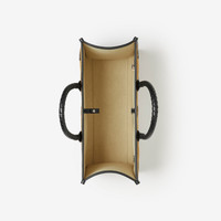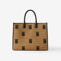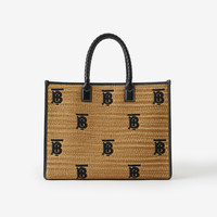 PRODUCT DETAILS A spacious raffia-effect tote trimmed with topstitched leather and highlighted with our Thomas Burberry Monogram. - 40 x 18 x 32cm/15.8 x 7.1 x 12.6in - Handle drop: 14.5cm/5.7in Outer: 47% polyester, 33% viscose, 15% polyamide, 5% elastane Trim: 100% calf leather Lining: 55% cotton, 45% linen Leather top handles One interior zip pocket Press-stud closure Hand-painted edges Polished metal hardware Made in Italy Item 80661971