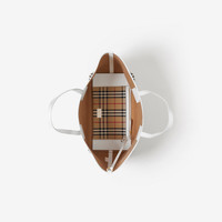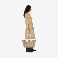 Product Details A tote bag made in Italy from Burberry Check cotton canvas and lined in cotton. The design is trimmed with smooth calf leather and features a detachable zip pouch. - Leather top handles - Open top - Hand-painted edges - Polished metal hardware - Detachable zip pouch - Cotton lining - Item 80723321 Size & Fit - 51.3 x 18.5 x 29cm/20.2 x 7.3 x 11.4in. Handle drop: 26cm/10.2in Fabric & Care - Outer: 100% cotton - Trim: 100% calf leather - Lining: 100% cotton - Made in Italy