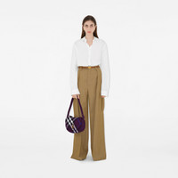 Product Details A structured bag made in Italy from a cotton blend jacquard-woven with the Burberry Check and lined in smooth leather. The saddle style has a curved shape and arched profile with prongs at the strap inspired by hardware found on equestrian reins. Our signature ‘b’ closure pivots in place to secure the flap and the adjustable strap switches the design from a shoulder to a crossbody bag. - Burberry Check cotton blend - Adjustable leather strap - Foldover flap with ‘b’ closure - Two interior slip pockets, exterior slip pocket with magnetic closure - Hand-painted edges - Brushed metal hardware - Leather lining - Comes with a dust bag - Item 80930621 Size & Fit - 26 x 9.5 x 20.5cm/10.2 x 3.7 x 8.1in. Min. strap drop: 26.5cm/10.4in. Max. strap drop: 54cm/21.3in Fabric & Care - Outer: 65% polyester, 35% cotton - Trim: 100% calf leather - Lining: 100% lambskin - Made in Italy