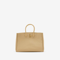 Product Details A softly structured tote made in Italy from grainy calf leather and lined in suede. The spacious bag features our signature ‘b’ closure and a smooth calf leather panel embossed with the Equestrian Knight Design. A detachable strap switches the style from a handheld to a shoulder bag. - Rolled leather top handles - Detachable, adjustable strap - ‘b’ closure - Exterior slip pocket with magnetic closure, interior zip pocket - Hand-painted edges - Brushed metal hardware - Embossed Equestrian Knight Design at back - Calf suede lining - Comes with a dust bag - Item 80994071 Size & Fit - 35.5 x 18 x 28cm/14 x 7.1 x 11in. Min. strap drop: 36cm/14.2in. Max. strap drop: 44cm/17.3in Fabric & Care - Outer: 100% calf leather - Trim: 100% calf leather - Lining: 100% calf suede - Made in Italy
