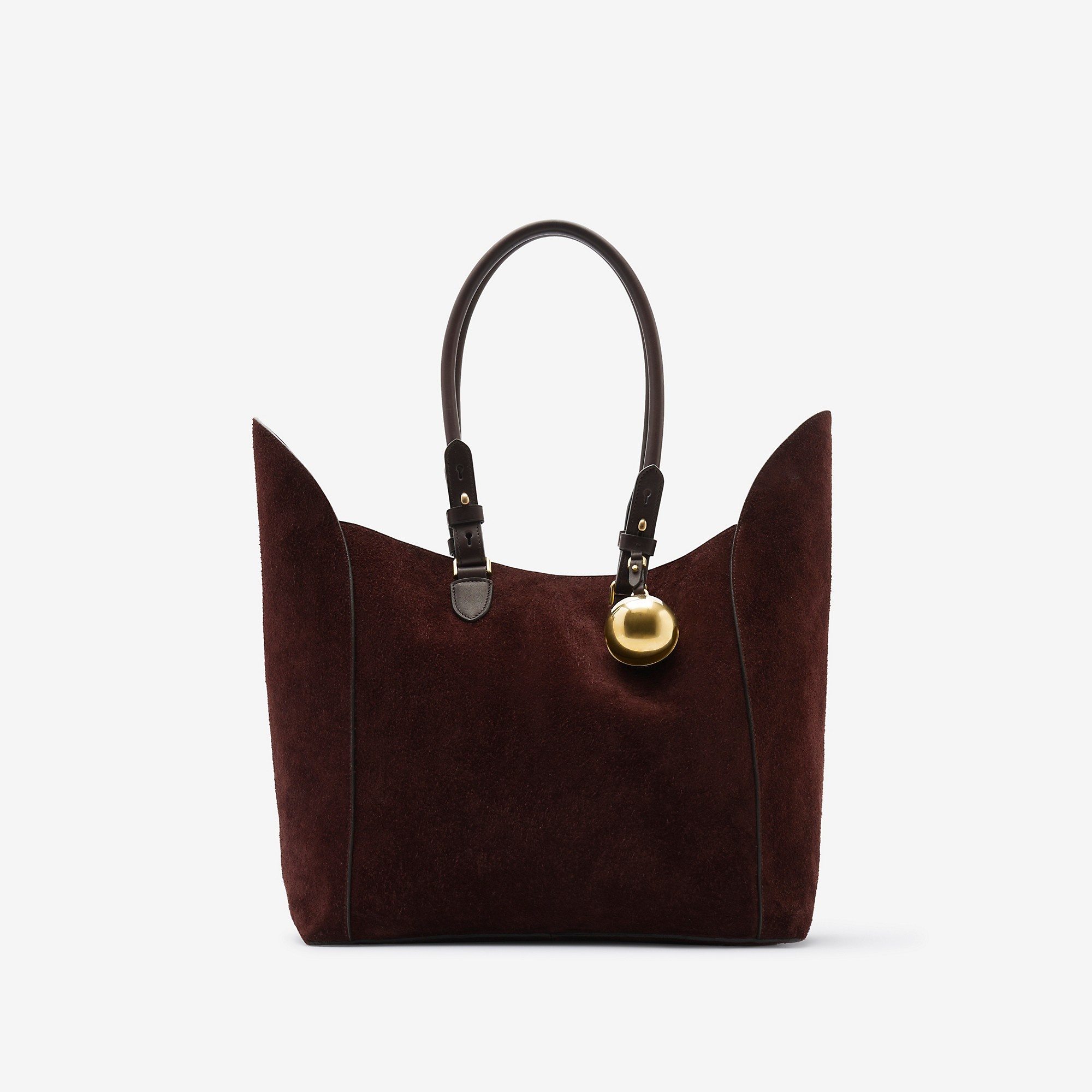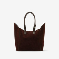 PRODUCT DETAILS A softly structured tote made in Italy from calf suede. Trimmed with smooth leather, the style has shield-shaped side panels and a detachable bell charm. - 46 x 18 x 38cm/18.1 x 7.1 x 14.9in - Handle drop: 23cm/9.1in Outer: 100% calf suede Inner: 100% calf leather Trim: 100% calf leather Made in Italy Item 80755501