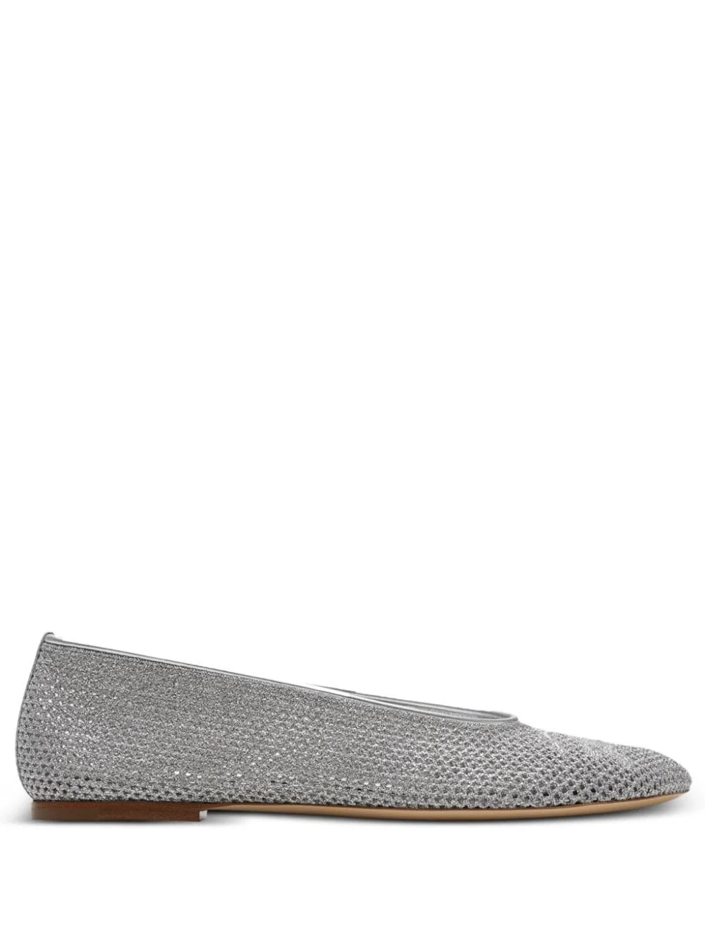 mesh ballerina shoes Highlights - Silver-tone - Leather - Metallic finish - Mesh design - Signature equestrian knight motif - Square toe - Slip-on style - Leather sole Made in Italy Composition Outer: Polyester 65%, Polyamide 24%, Sheepskin 10%, Elastane 1% Lining: Sheepskin 100% Sole: Leather 100%