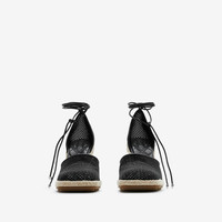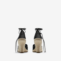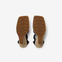 Product Details Italian-made espadrilles in a mesh knit, embroidered with the Equestrian Knight Design. The style is set on a jute wedge heel and fastens with smooth leather ankle ties detailed with metal shields. - Squared toe - Quilted leather insole - Burberry lettering at sole - Comes with a dust bag - Item 80903271 Fabric & Care - Upper: 50% polyester, 40% polyamide, 9% sheep leather, 1% elastane - Lining: 100% sheep leather - Sole: 70% jute, 30% thermoplastic polyurethane - Made in Italy