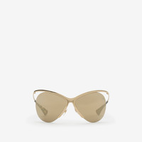 Product Details A contemporary take on the classic pilot sunglasses, debuted on the Burberry Winter 2025 runway. Made in Italy, the sculptural metal frame curves smoothly into the temples which feature our engraved logo and contrasting tortoiseshell acetate tips. - Scratch-resistant gold mirrored lenses - 100% UV protection - Engraved Equestrian Knight Design at lens - Engraved Burberry lettering at temples - Comes with a Burberry Check case and cleaning cloth - Item 40851781 Size & Fit - Frame width: 14.5cm/5.7in. Frame height: 6.2cm/2.4in Fabric & Care - Frame: 100% metal - Trim: 100% acetate - Made in Italy