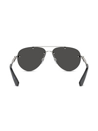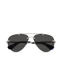 metallic aviator-frame sunglasses Highlights - Silver-tone - Metal - Metallic effect - Signature ray-ban aviator frame - Grey tinted lenses - Uv-protective lenses - Logo plaque at the arm - Double bridge - Straight arms - Curved tips - These glasses come with a protective case. Made in United States Composition Metal 100% SIZE & FIT Measurement Arm Length 5.51 in(14 cm) Bridge Width 0.51 in(1.3 cm) Lens Diameter 2.36 in(6 cm)