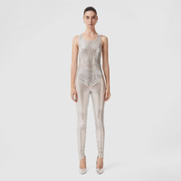 PRODUCT DETAILS Italian-crafted leggings in form-fitting mesh, embellished with metallic paillettes. The design is layered with a detachable lining in stretch jersey. The piece forms part of an exclusive capsule collection by Burberry and Nordstrom. - Leggings inside leg length: 75cm/29.5in. This is based on a size UK 6 as proportions change slightly according to size. - Model’s height: 180cm/5ft 11in. Model wears size UK 6. Outer: 100% polyamide Trim: 100% aluminium Detachable lining: 59% polyamide, 41% elastane Buttons: mother-of-pearl Concealed back zip closure Outer: hand wash Lining: machine wash Made in Italy Item 80593081