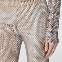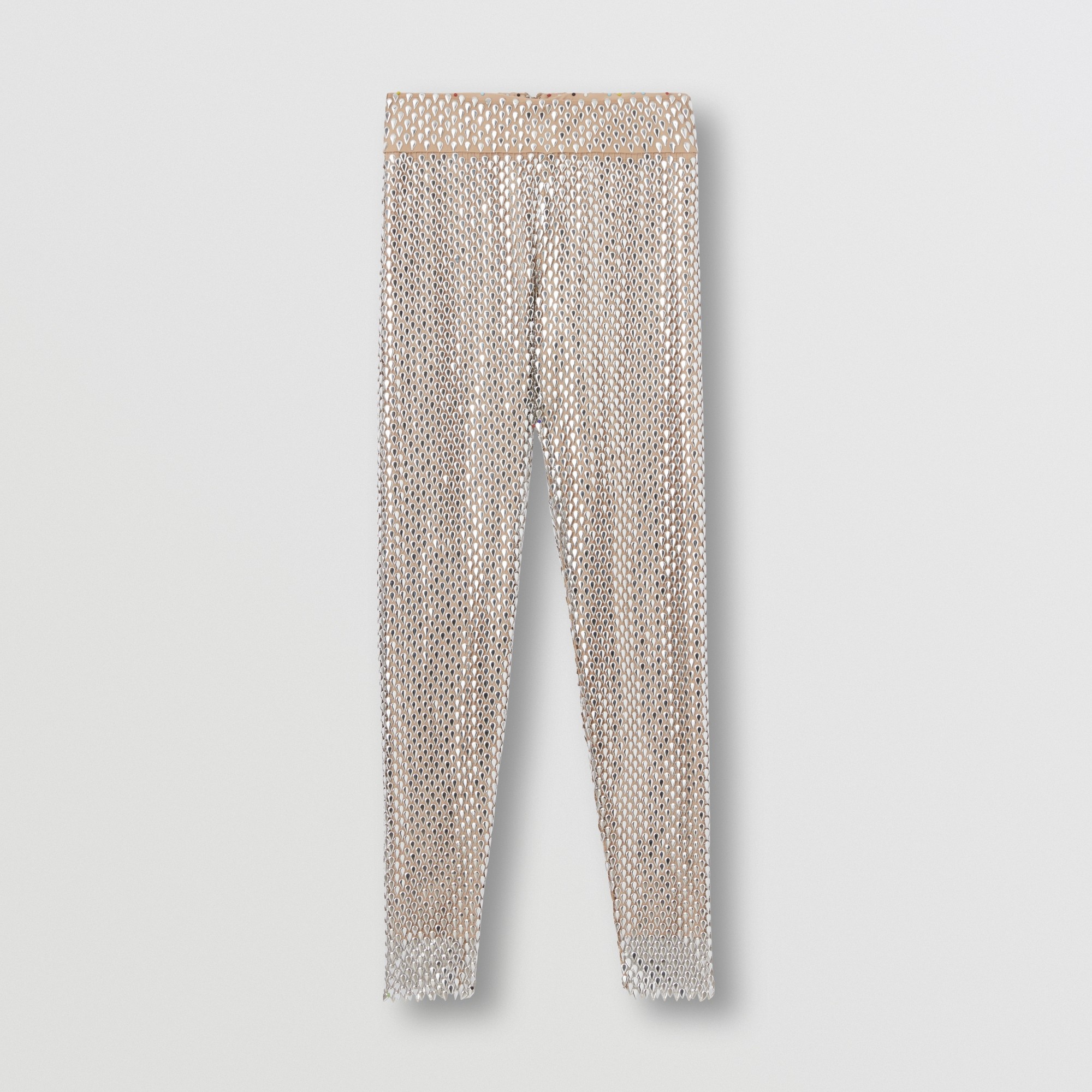 PRODUCT DETAILS Form-fitting leggings in lightweight mesh, embellished with light-catching paillettes. - Leggings inside leg length: 75cm/29.5in. This is based on a size UK 6 as proportions change slightly according to size. - Model’s height: 180.5cm/5ft 11.5in. Model wears size UK 6. 59% polyamide, 41% elastane Trim: 100% aluminium Button: mother-of-pearl Concealed hook-and-eye, zip closure Hand wash Made in Italy Item 80559241