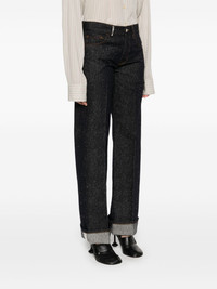 straight-leg jeans Highlights - Indigo blue - Front button fastening - Classic five pockets - Pressed crease - Ring hardware detailing Made in Italy Composition Cotton 71%, Polyamide 24%, other fibers 5% SIZE & FIT Model measurements Height 5 ft 10 in(1.78 m) Bust/Chest 33.85 in(86 cm) Hips 36.61 in(93 cm) Waist 26.77 in(68 cm) FittingInformation Designed with a wide leg cut, these jeans allow for a close fit at the waist and offer a loose and roomy fit over the leg Sturdy and hard-wearing, this denim piece offers no stretch Washing instructions Dry Clean Only