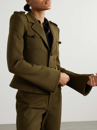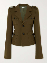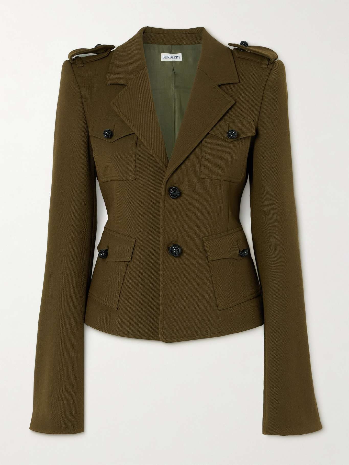EDITORS'NOTES Modelled on traditional field styles, Burberry's jacket is tailored from army-green twill in an hourglass shape and detailed with shoulder epaulettes and an array of flap pockets. The knotted leather buttons lend a modern edge. DETAILS & CARE - Army-green twill - Button fastenings throughfront - 36% polyamide, 34% nylon, 29% wool, 1% elastane