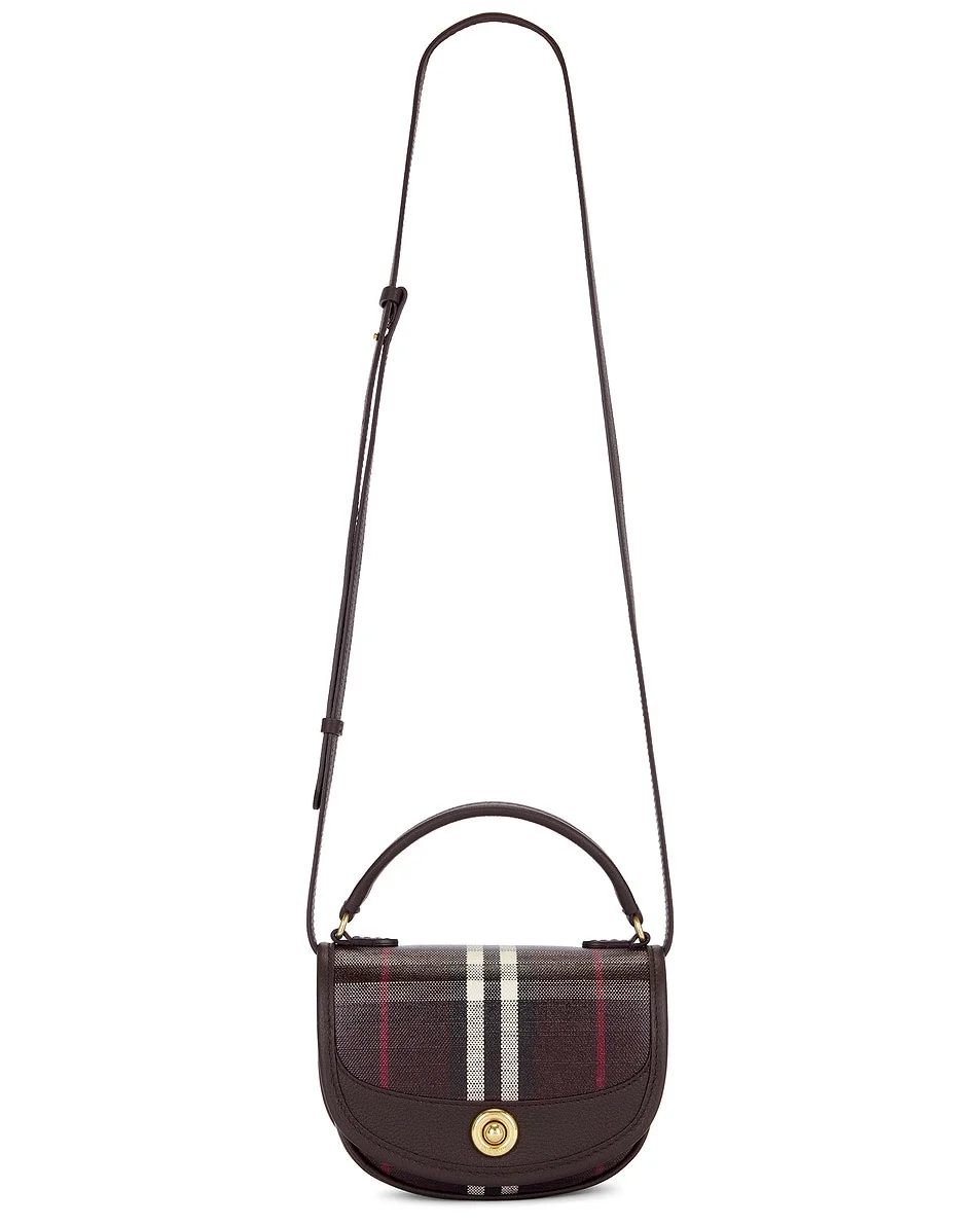 Details - Jacquard exterior with calfskin leather trim and gold-tone hardware - Canvas lining - Magnetic push-button flap closure - One main compartment - Two interior credit card slots - Detachable and adjustable shoulder strap - Measures approx 23 cm W x 18 cm H x 8 cm D - Shoulder strap with a 16.5-53 cm drop - Top handle with a 9 cm drop - Made in Italy - Our Style No. BURF-WY270 - Manufacturer Style No. 8114721