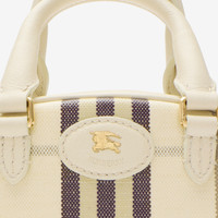 Product Details Rooted in the outdoors, our mini Highlands bowling bag is made in Italy from a cotton linen blend trimmed with smooth calf leather and lined in cotton. The fabric is jacquard-woven with the Burberry Check and has a coated finish inspired by rainwear. The design can be worn crossbody with the detachable strap and is finished with our Knight stamp, an archival motif first seen on Burberry bags in the 1980s. - Rolled leather top handles - Detachable, adjustable leather strap - Two-way zip closure - Hand-painted edges - Brushed metal hardware - Leather patch with Equestrian Knight Design at front - Cotton lining - Comes with a dust bag - Item 81200131 Size & Fit - 19.5 x 9 x 12cm/7.7 x 3.5 x 4.7in. Min. strap drop: 48cm/18.9in. Max. strap drop: 62cm/24.4in Fabric & Care - 69% cotton, 21% viscose, 10% linen - Trim: 100% calf leather - Lining: 100% cotton - Made in Italy