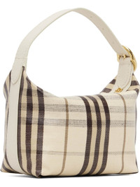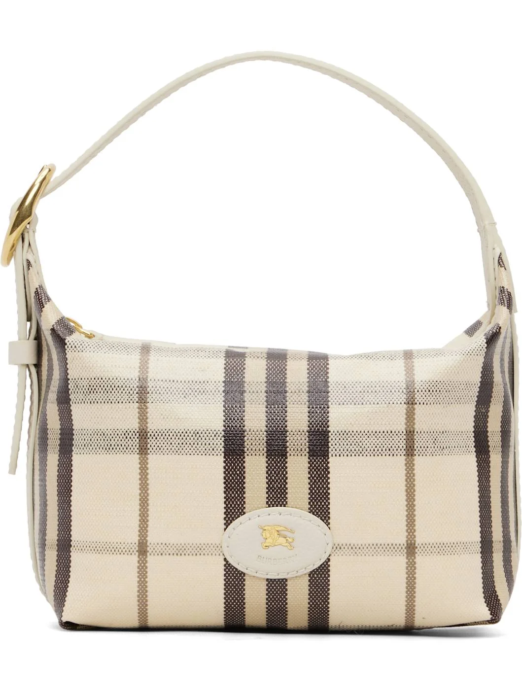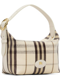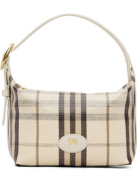 Coated cotton canvas shoulder bag. · Grained calfskin trim throughout · Hand-painted edges and check pattern throughout · Adjustable shoulder strap · Leather logo patch at face · Zip closure · Unlined · H6" x W9" x D4" Supplier color: Light beige Textile.. Made in Italy 261376F048013