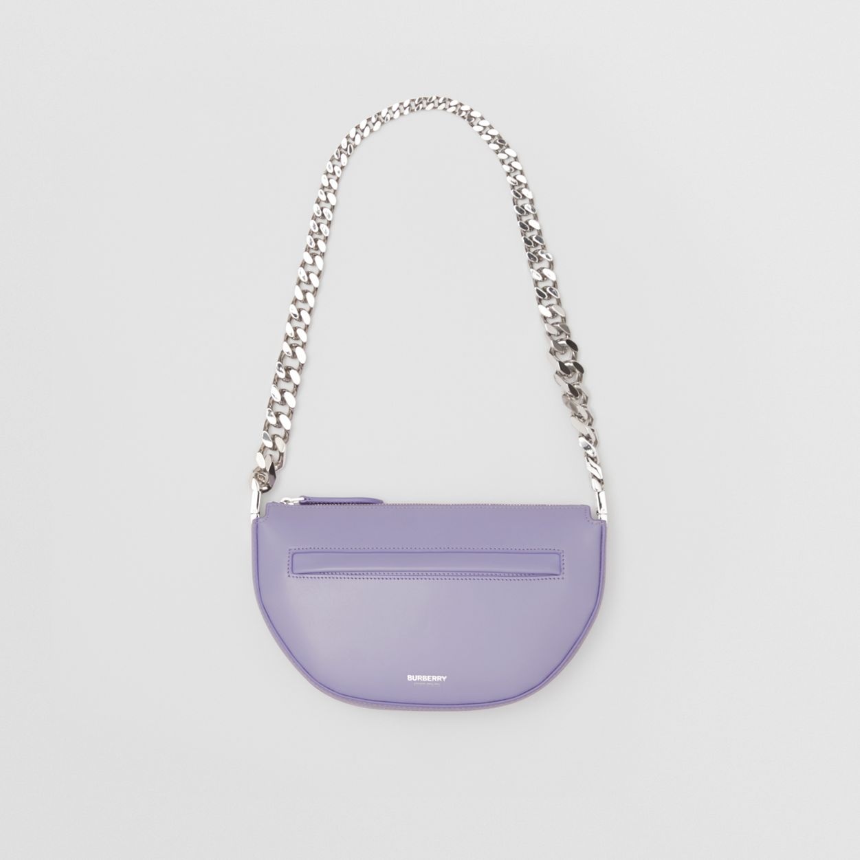 PRODUCT DETAILS A runway shoulder bag with a curved silhouette, sculpted from a firm scratch-resistant leather with a subtle gloss finish. The slim, structured style features palladium-plated hardware and exterior slip and zip pockets for easy access. 22.5 x 4 x 13.5cm/8.9 x 1.6 x 5.3in Strap drop: 27cm/10.6in Outer: 100% calf leather Lining: 100% lambskin Pocket lining: 60% cotton, 40% polyester Chain shoulder strap One exterior zip pocket, one interior slip pocket Zip closure Hand-painted edges Polished metal hardware Embossed Burberry lettering at front Made in Italy 80490051
