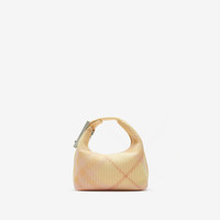 Product Details A softly structured bag knitted in Italy with the Burberry Check. The lightweight bag is unlined and finished with a logo-engraved peg clip to secure the curved top handle. - Zip closure - Brushed metal hardware - Engraved Burberry lettering at peg - Unlined - Item 80820411 Size & Fit - 21.5 x 10.5 x 23cm/8.5 x 4.1 x 9.1in Fabric & Care - 100% polyamide - Trim: 57% polyester, 43% polyurethane - Made in Italy