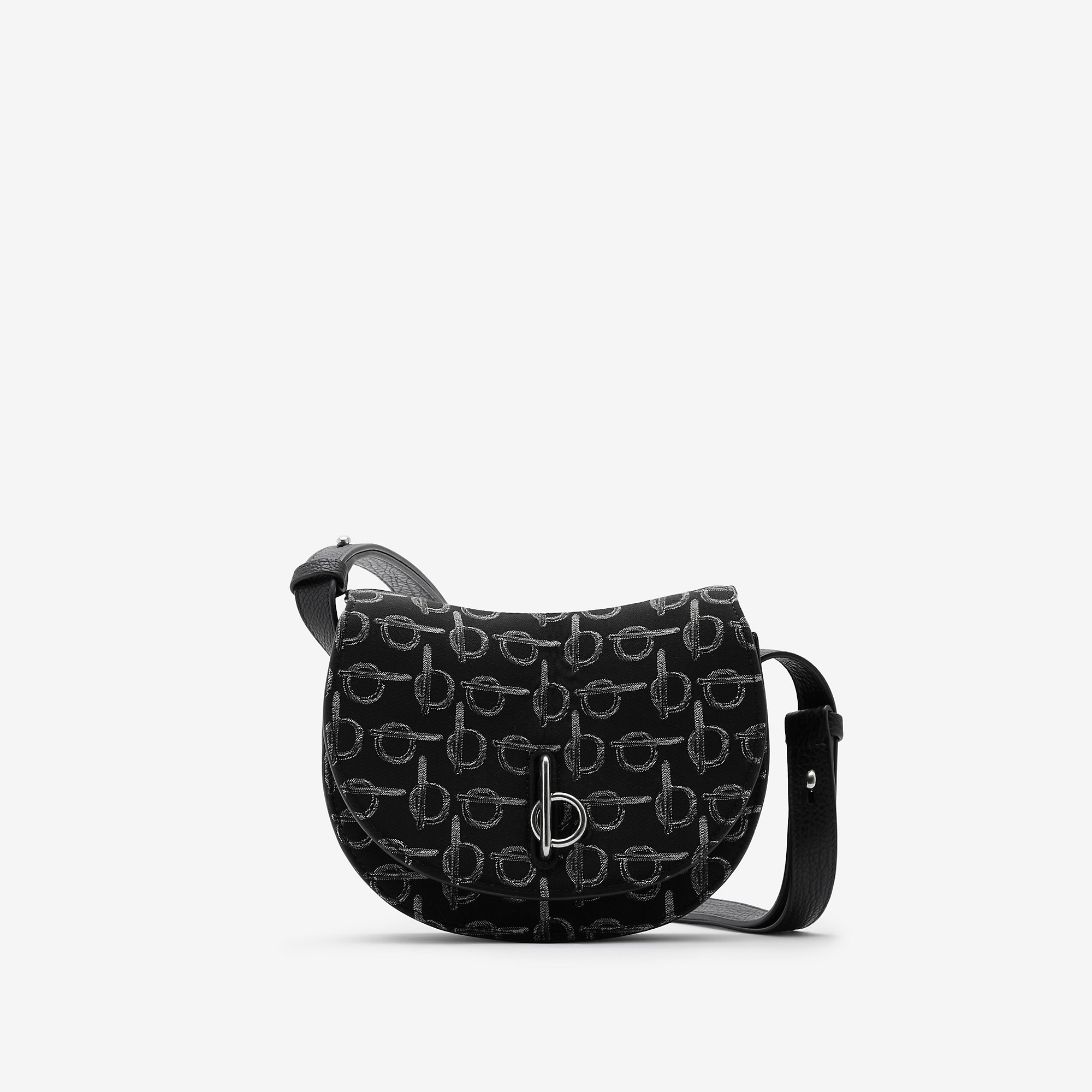 Product Details A structured bag made in Italy from a water-repellent cotton blend woven with the ‘b’ closure pattern and lined in contrasting vine green smooth leather. The saddle style has a curved shape and arched profile with prongs at the strap inspired by hardware found on equestrian reins. Our signature ‘b’ closure pivots in place to secure the flap and the adjustable strap switches the design from a shoulder to a crossbody bag. - Cotton blend - Adjustable leather strap - Foldover flap with 'b' closure - Hand-painted edges - Brushed metal hardware - Leather lining - Comes with a dust bag - Item 80859441 Size & Fit - 19 x 6 x 16cm/7.5 x 2.4 x 6.3in. Min. strap drop: 31cm/12.2in. Max. strap drop: 61cm/24in Fabric & Care - Outer: 52% polyester, 48% cotton - Trim: 100% calf leather - Lining: 100% lambskin - Made in Italy