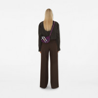 Product Details A structured bag made in Italy from a cotton blend, jacquard-woven with the Burberry Check and lined in smooth leather. The curved shape is inspired by childhood rocking horses and features the ‘b’ closure at the flap. A leather strap adjusts the design from a shoulder to a crossbody bag. - Adjustable leather strap - Foldover flap with ‘b’ closure - Hand-painted edges - Brushed metal hardware - Leather lining - Comes with a dust bag - Item 80950611 Size & Fit - 19 x 6 x 16cm/7.5 x 2.4 x 6.3in. Min. strap drop: 31cm/12.2in. Max. strap drop: 61cm/24in Fabric & Care - Outer: 65% polyester, 35% cotton - Trim: 100% calf leather - Lining: 100% lambskin - Made in Italy