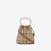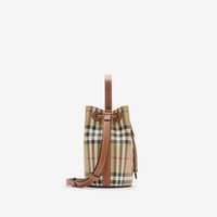 Product Details A bucket bag made in Italy from a coated cotton blend printed with the Burberry Check. The softly structured shape is lined in cotton and features a drawcord closure with a leather shield toggle. Carry by the top handle or wear as a crossbody bag using the adjustable strap. - Leather top handle - Adjustable crossbody strap - Drawcord closure - Hand-painted edges - Polished metal hardware - Cotton lining - Comes with a dust bag - Item 81097941 Size & Fit - 18.5 x 11 x 16.5cm/7.3 x 4.3 x 6.5in. Min. strap drop: 48cm/18.9in. Max. strap drop: 54cm/21.3in Fabric & Care - Outer: 55% polyurethane, 25% polyester, 20% cotton - Trim: 100% calf leather - Lining: 100% cotton - Made in Italy