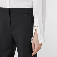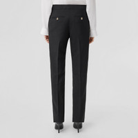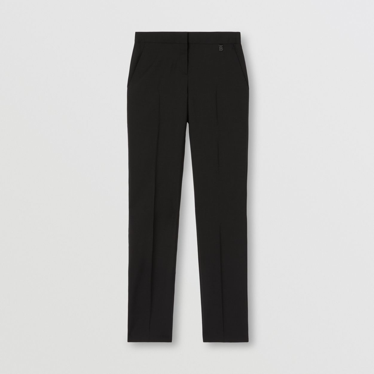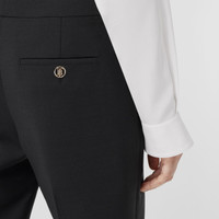 PRODUCT DETAILS Tailored trousers cut to a slim fit in Italian-woven mohair wool, accented with sharp pleats and the Thomas Burberry Monogram. The style forms part of our Future Heritage collection, a modern capsule of elevated essentials. Trouser inside leg length: 77cm/30.3in. This is based on a size UK 6 as proportions change slightly according to size. Model’s height: 177cm/5ft 10in. Model wears size UK 6. Outer: 60% mohair, 40% wool Lining: 93% cupro, 7% elastane Concealed hook-and-bar, button and zip fly closure Side slip pockets, back button-through welt pockets Specialist dry clean Made in Italy 80554481