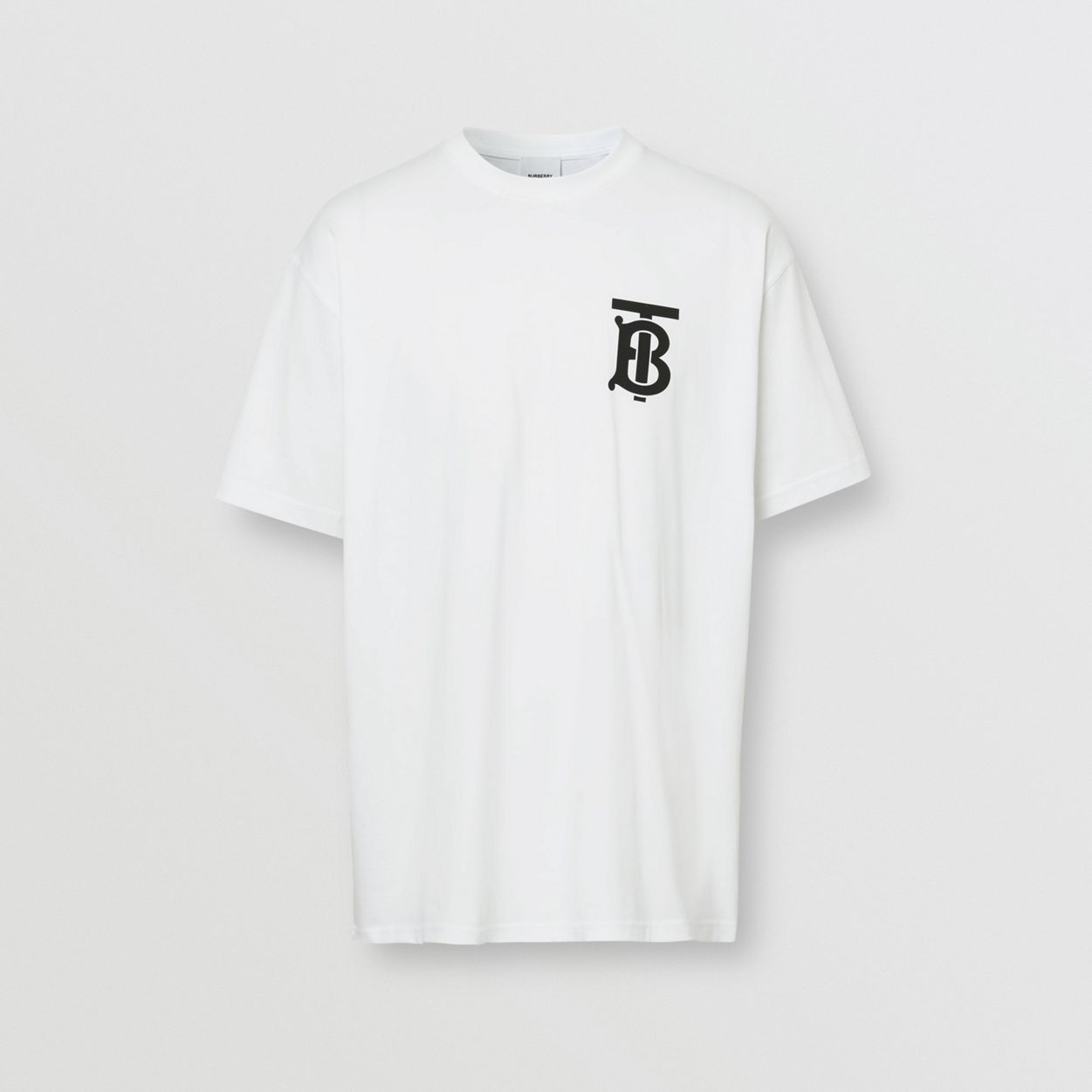 PRODUCT DETAILS An oversized T-shirt in cotton jersey tagged with a rubberised Thomas Burberry Monogram. This style fits large to size. For a regular fit, please take a size smaller than normal. Model’s height: 178cm/5ft 10in. Model wears size UK S. 100% cotton Trim: 97% cotton, 3% elastane Machine wash Made in Italy 80174731