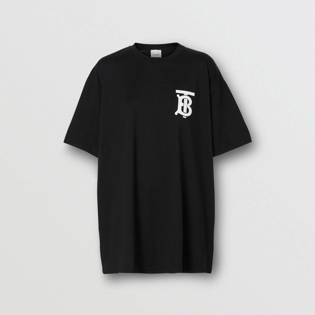 PRODUCT DETAILS An oversized T-shirt in cotton jersey tagged with a rubberised Thomas Burberry Monogram. This style fits large to size. For a regular fit, please take a size smaller than normal Model’s height: 178cm/5ft 10in. Model wears size UK S. 100% cotton Trim: 97% cotton, 3% elastane Machine wash Imported 80174721