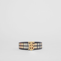 PRODUCT DETAILS An Italian-made belt revised in Vintage check and lined with smooth leather. The design is secured with a Monogram motif plaque buckle. The main material of this product is made with at least 30% bio-based materials. Bio-based materials are derived from renewable natural resources such as plants and castor oil. 3.5cm/1.4in wide Outer: 75% thermoplastic polyurethane, 25% cotton Lining: 100% leather Buckle: stainless steel with gold-plating Hand-painted edges Polished metal hardware Made in Italy 80465461