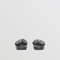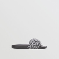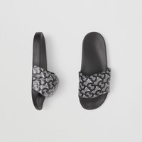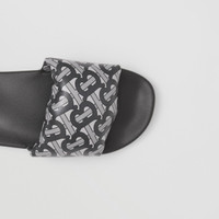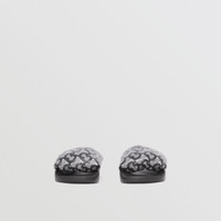 PRODUCT DETAILS Slides in supple lambskin, highlighted with our graphic Monogram print. The design features a contoured insole for comfort. Upper: 100% lambskin Lining: 75% rubber, 25% lambskin Sole: 100% rubber Slip-on style Raised Burberry lettering at side Made in Italy 80503851