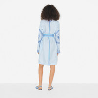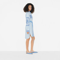 PRODUCT DETAILS A belted shirt dress cut from Italian-woven silk, styled with a grandad collar and polished D-rings to adjust the sleeve length. The hand-drawn design is inspired by a print from our archives and features a series of London landmarks framed by wreaths. - Dress length: 100cm/39.3in. This is based on a size UK 6. - Model's height: 177cm/5ft 10in. Model wears size UK 6. 100% silk Long sleeves with buttoned cuffs Concealed button closure Patch pockets Self-tie belt Specialist dry clean Imported Item 80696481