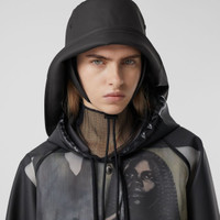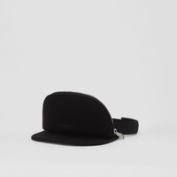 PRODUCT DETAILS An Italian-made visor in neoprene, reimagined with a detachable zip pocket digitally printed with our logo. Zip pocket: 14 x 9cm/5.5 x 3.5in Outer: 100% modal; 100% calf leather Inner: 100% lambskin Lining: 100% cotton One interior card slot Elasticated headband Printed Burberry lettering at front Made in Italy 80431841