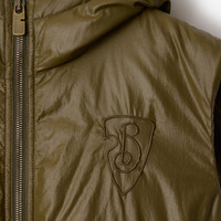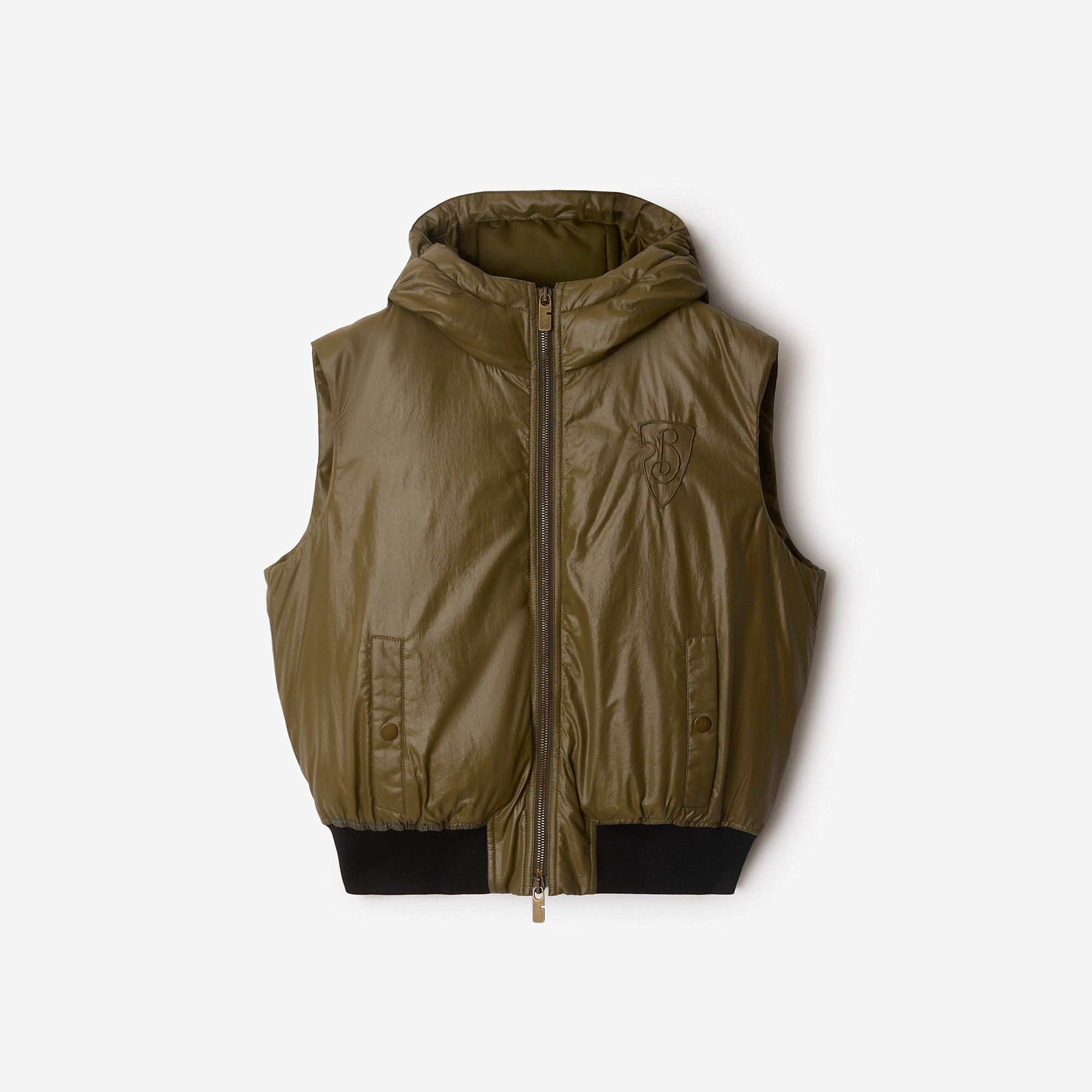 Product Details A hooded gilet made in Italy from a glossy washed nylon filled with goose down and feathers. The style is cut to a relaxed fit and embroidered with our B shield, a motif inspired by the Equestrian Knight Design. - Two-way zip closure - Drawcord hood - Side press-stud welt pockets - Rib-knit hem - Embroidered B shield at chest - This item will be packaged in a recycled cotton tote unless the gift packaging option is selected at checkout. - Relaxed fit: a looser cut than our regular fit. - Machine wash - Item 80984921 Size & Fit - Length: 52cm/20.5in (size UK S) - Model’s height: 177cm/5ft 10in. Model wears size UK S Fabric & Care - Outer: 100% polyamide - Trim: 90% cotton, 8% polyamide, 2% elastane - Lining: 100% polyester - Filling: 90% goose down, 10% goose feathers - Made in Italy