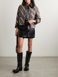 Corduroy-trimmed quilted checked cotton jacket Multi