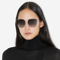 PRODUCT DETAILS A minimalistic silhouette accented with a sculptural logo at the temples. - Frame width: 14.9cm/5.9in - Frame height: 5.7cm/2.2in Metal and acetate frame Scratch-resistant gradient black lenses with 100% UV protection Made in Italy Comes with a hard leather case and cleaning cloth Item 40830401