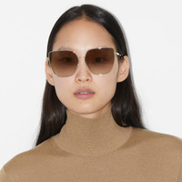 PRODUCT DETAILS A minimalistic silhouette accented with a sculptural logo at the temples. - Frame width: 14.9cm/5.9in - Frame height: 5.7cm/2.2in Metal and acetate frame Scratch-resistant gradient brown lenses with 100% UV protection Made in Italy Comes with a hard leather case and cleaning cloth Item 40830371