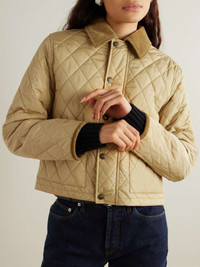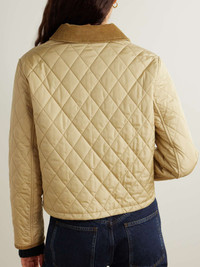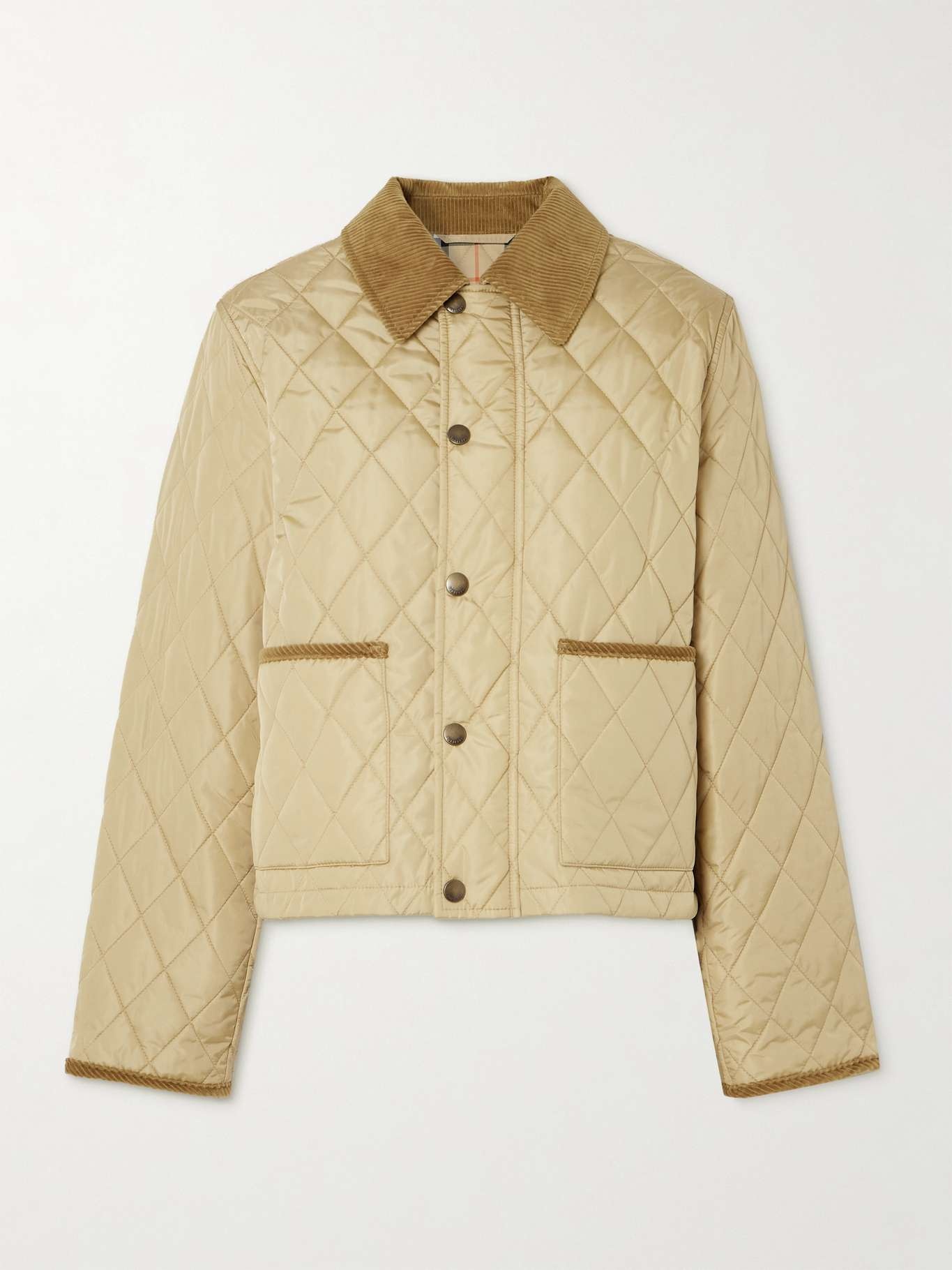 EDITORS'NOTES Burberry's designs are informed by over a century of British heritage and expertise. Made from shell that's quilted for warmth, this jacket has a boxy shape defined by cotton-corduroy trims on the collar, cuffs and pockets. Look closer, and you'll notice how the burnished snaps are debossed with the house's moniker. SIZE & FIT Model measurements: - Fits true to size, take your normal size - Designed for a relaxed fit - Quilted, non-stretchy fabric - Model is 177cm/ 5'10" and is wearing a size Small - Bust: 81cm/ 32" - Waist: 68cm/ 27" - Hip: 94cm/ 37" DETAILS & CARE - Tan shell, brown cotton-corduroy - Snaps and concealed zip fastening through front - 100% polyamide; trim: 100% cotton; filling: 100% polyester; lining: 100% cotton - Dry clean