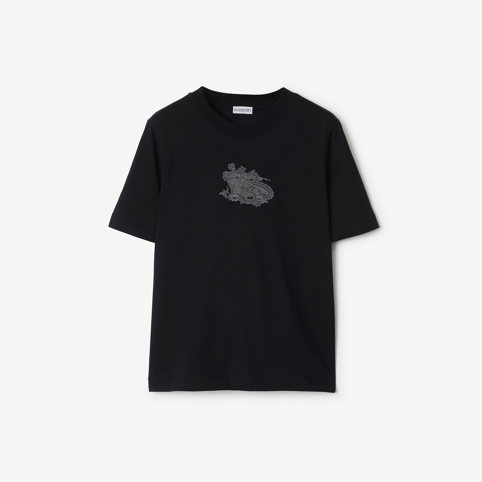 Product Details A cotton jersey T-shirt printed with our Equestrian Knight Design intertwined with a hand-drawn paisley pattern. The crew-neck style is cut to a regular fit. - Rib-knit neckline - Regular fit. Fits true to size, take your normal size. - Machine wash - Item 80979241 Size & Fit - Length: 61cm/24in (size UK S) - Model’s height: 180cm/5ft 11in. Model wears size UK S Fabric & Care - 100% cotton - Trim: 97% cotton, 3% elastane - Made in Portugal