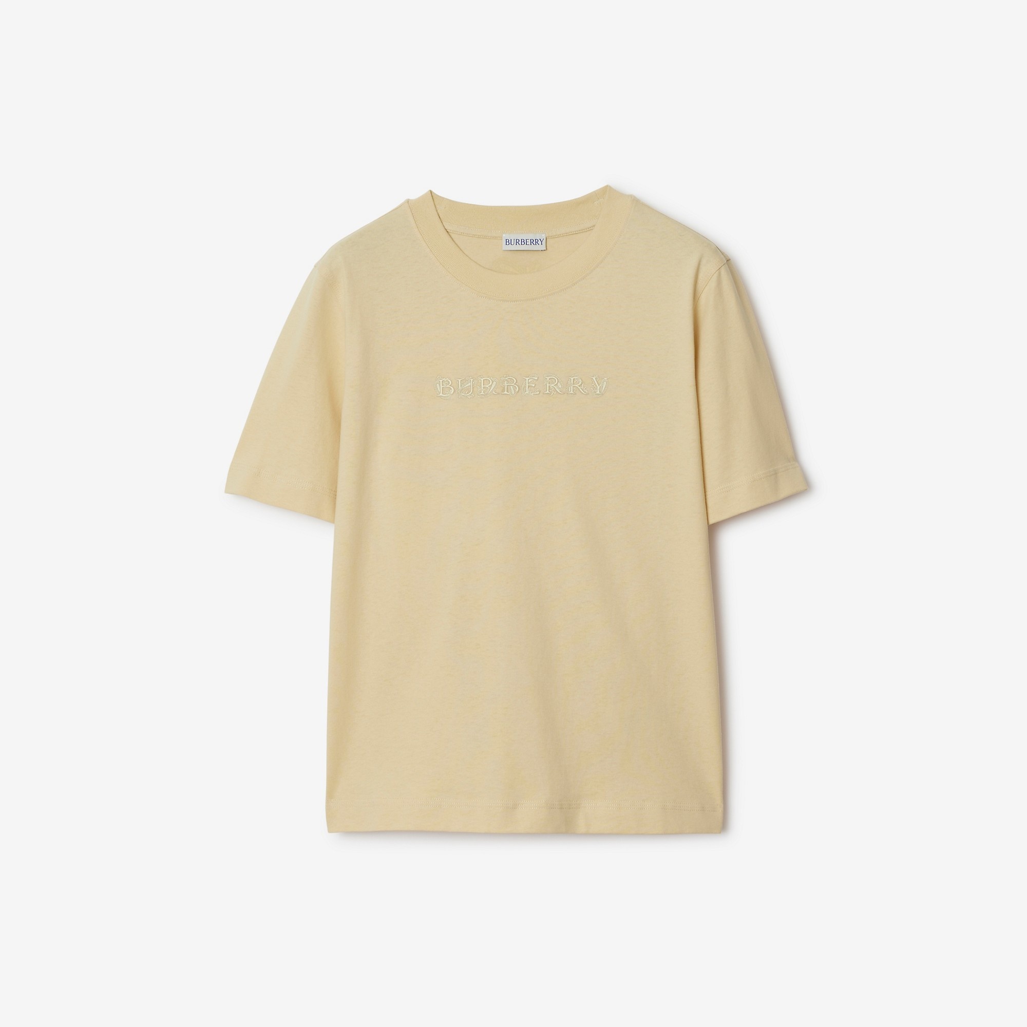 Product Details A cotton jersey T-shirt printed with our logo intertwined with a hand-drawn paisley pattern. Cut to a regular fit. - Rib-knit neckline - Printed Burberry lettering - Regular fit. Fits true to size, take your normal size. - Machine wash - Item 80979251 Size & Fit - Length: 61cm/24in (size UK S) - Model’s height: 176cm/5ft 9in. Model wears size UK S Fabric & Care - 100% cotton - Trim: 97% cotton, 3% elastane - Made in Portugal