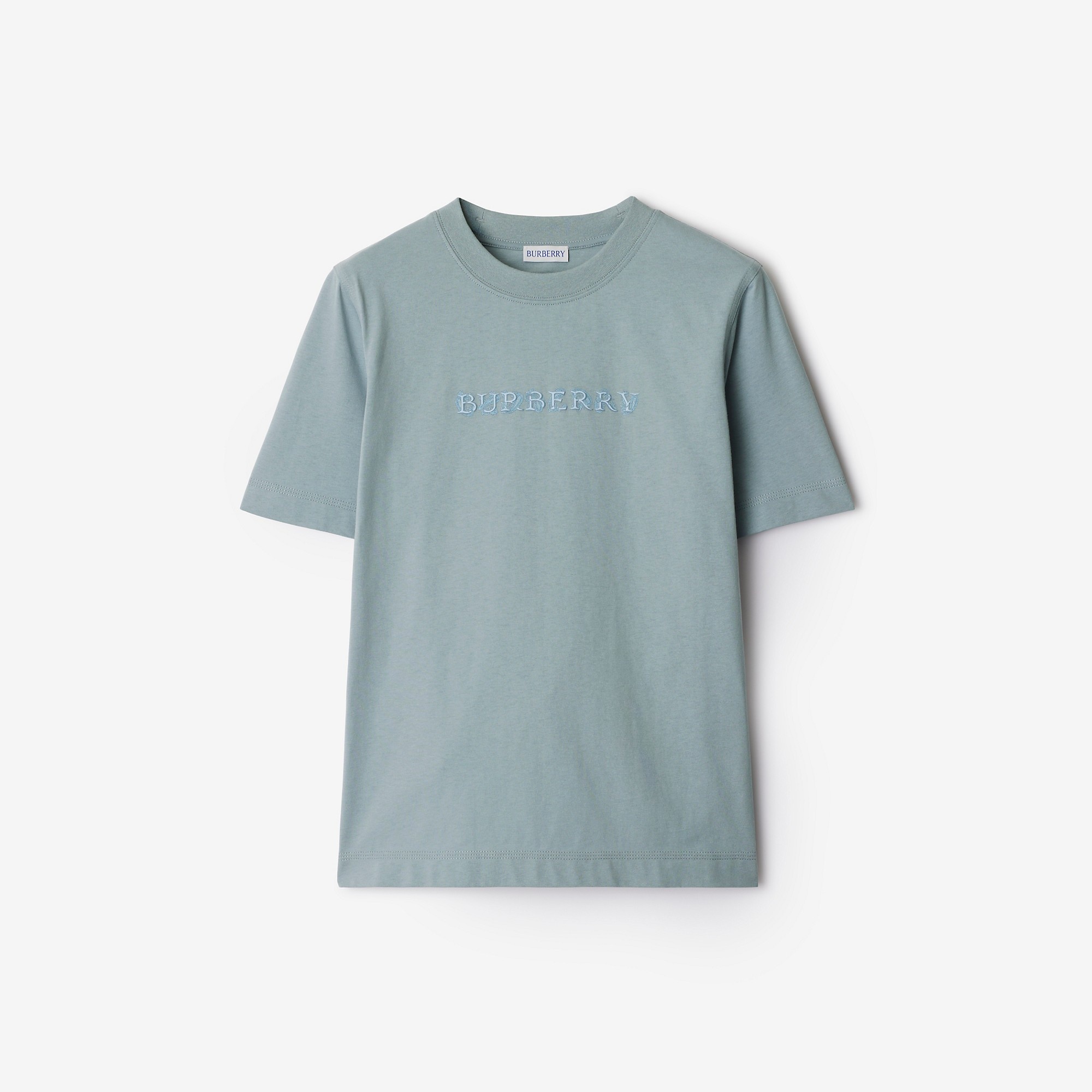 Product Details A cotton jersey T-shirt printed with our logo intertwined with a hand-drawn paisley pattern. Cut to a regular fit. - Rib-knit neckline - Printed Burberry lettering - Regular fit. Fits true to size, take your normal size. - Machine wash - Item 80998331 Size & Fit - Length: 61cm/24in (size UK S) - Model’s height: 177cm/5ft 10in. Model wears size UK S Fabric & Care - 100% cotton - Trim: 97% cotton, 3% elastane - Made in Portugal
