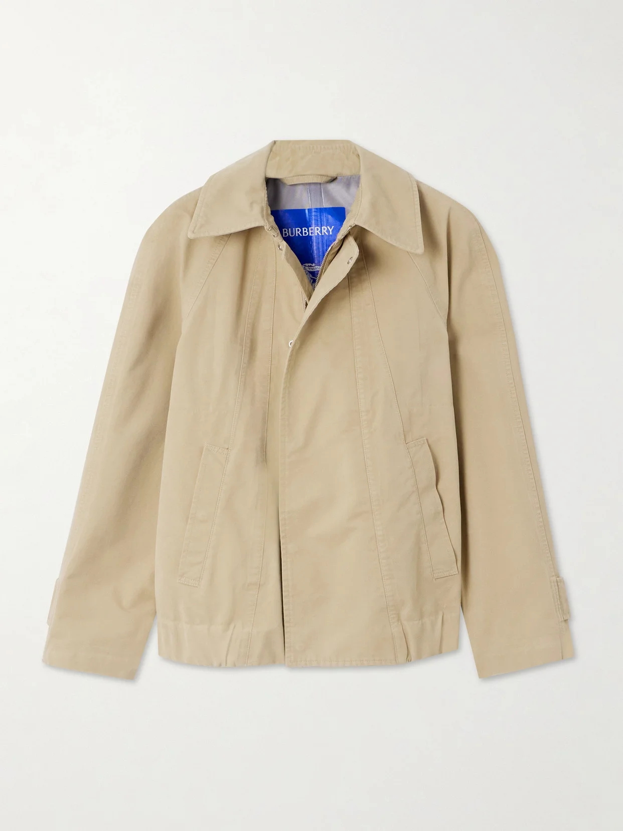 Storied heritage meets contemporary style in Burberry's jacket. Made from panels of cotton-canvas, it has a slightly loose fit with an elasticated hem and concealed placket. The neat collar and cuff tabs offer a smart finish.