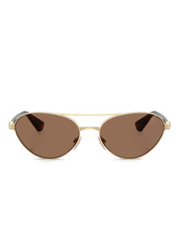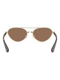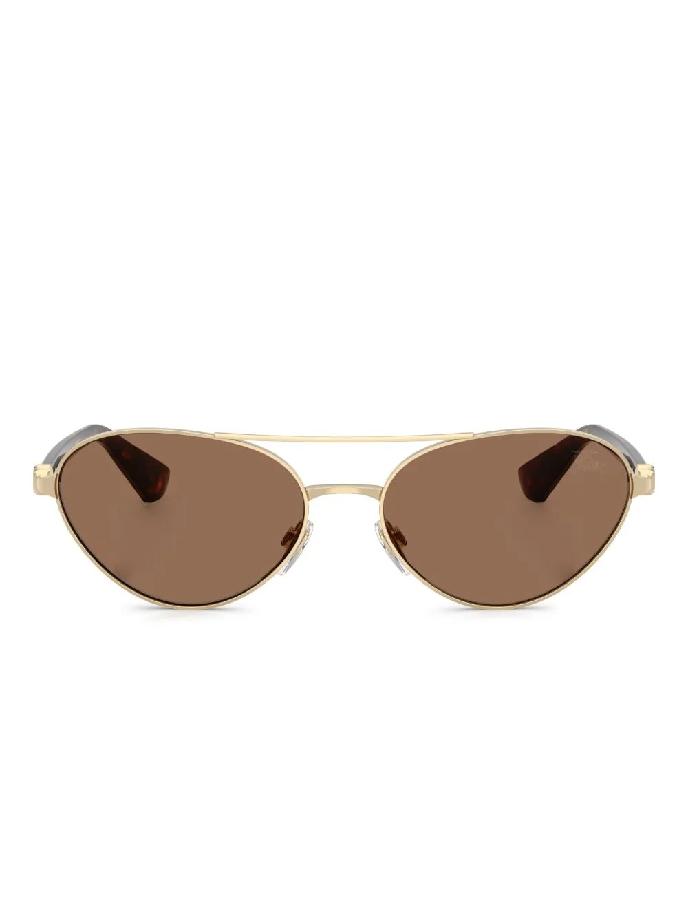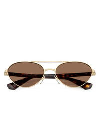 pilot-frame sunglasses Highlights - Gold-tone - Nose pads - Double bridge - These glasses come with a protective case. Made in United States Composition Metal 100%, Acetate 100% SIZE & FIT Measurement Arm Length 5.51 in(14 cm) Bridge Width 0.66 in(1.7 cm) Lens Diameter 2.28 in(5.8 cm)