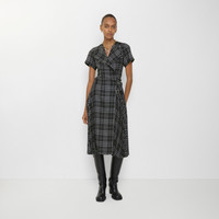 Product Details A short-sleeved wrap dress in a wool blend twill, woven with a tartan-inspired check and shaped with a pleated skirt inspired by kilts. The crew-neck silhouette is tailored to a slim fit and can be adjusted with the calf leather B buckle straps. - Side B buckle and button closure - Slim fit: this style is cut to a fitted silhouette. Fits true to size, take your normal size. - Item 81160161 Size & Fit - Length: 115cm/45.3in (size UK 6) - Model’s height: 180cm/5ft 11in. Model wears size UK 6 Fabric & Care - Outer: 55% polyester, 45% wool - Trim: 100% calf leather - Lining panels: 100% cotton - Buttons: buffalo horn - Specialist dry clean - Imported