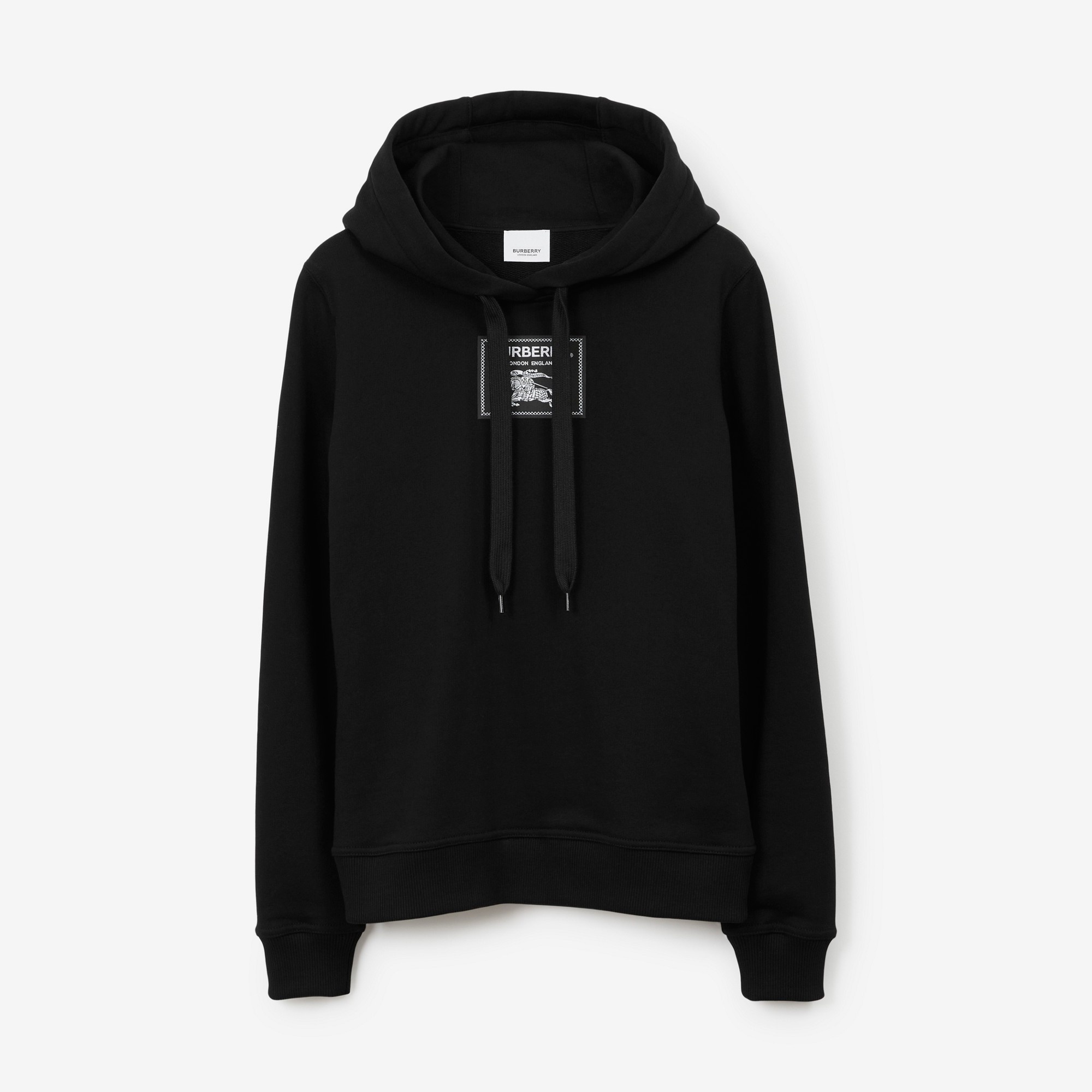PRODUCT DETAILS A classic hoodie containing organic cotton, cut to a slim fit. The design features an appliquéd patch highlighted with our logo and the Equestrian Knight Design – inspired by labels found in archive Burberry pieces. The rider’s banner reads ‘Prorsum’, a Latin term which translates to ‘forwards’. - Hoodie length: 62cm/24.4in. This is based on a size UK S as proportions change slightly according to size. - Model’s height: 180cm/5ft 11in. Model wears size UK S. Slim fit 100% cotton Trim: 98% cotton, 2% elastane Drawcord hood Pouch pockets Machine wash Imported Item 80634751