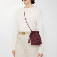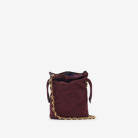 Product Details Inspired by country pursuits, a softly structured Horseshoe pouch in a quilted nylon blend with a Burberry Check lining. The design is detailed with leather trims and our Knight stamp, an archival motif first seen on Burberry bags in the 1980s. Carry crossbody or on the shoulder with the chain strap, intertwined with Burberry Check. - Chain strap - Drawcord closure - Hand-painted edges - Brushed metal hardware - Leather patch with Equestrian Knight Design at front - Burberry Check lining - Comes with a dust bag - Item 81184511 Size & Fit - 14 x 10 x 19cm/5.5 x 3.9 x 7.5in. Strap drop: 58cm/22.8in Fabric & Care - Outer: 90% polyamide, 10% acrylic - Trim: 100% calf leather - Lining: 100% polyamide - Imported