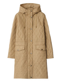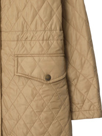 quilted hooded coat Highlights - Camel brown - Diamond pattern - Adjustable drawstring hood - Dual front pockets - Press-stud fastening Imported Composition Fabric 100% Washing instructions Read Manufacturer Guidelines