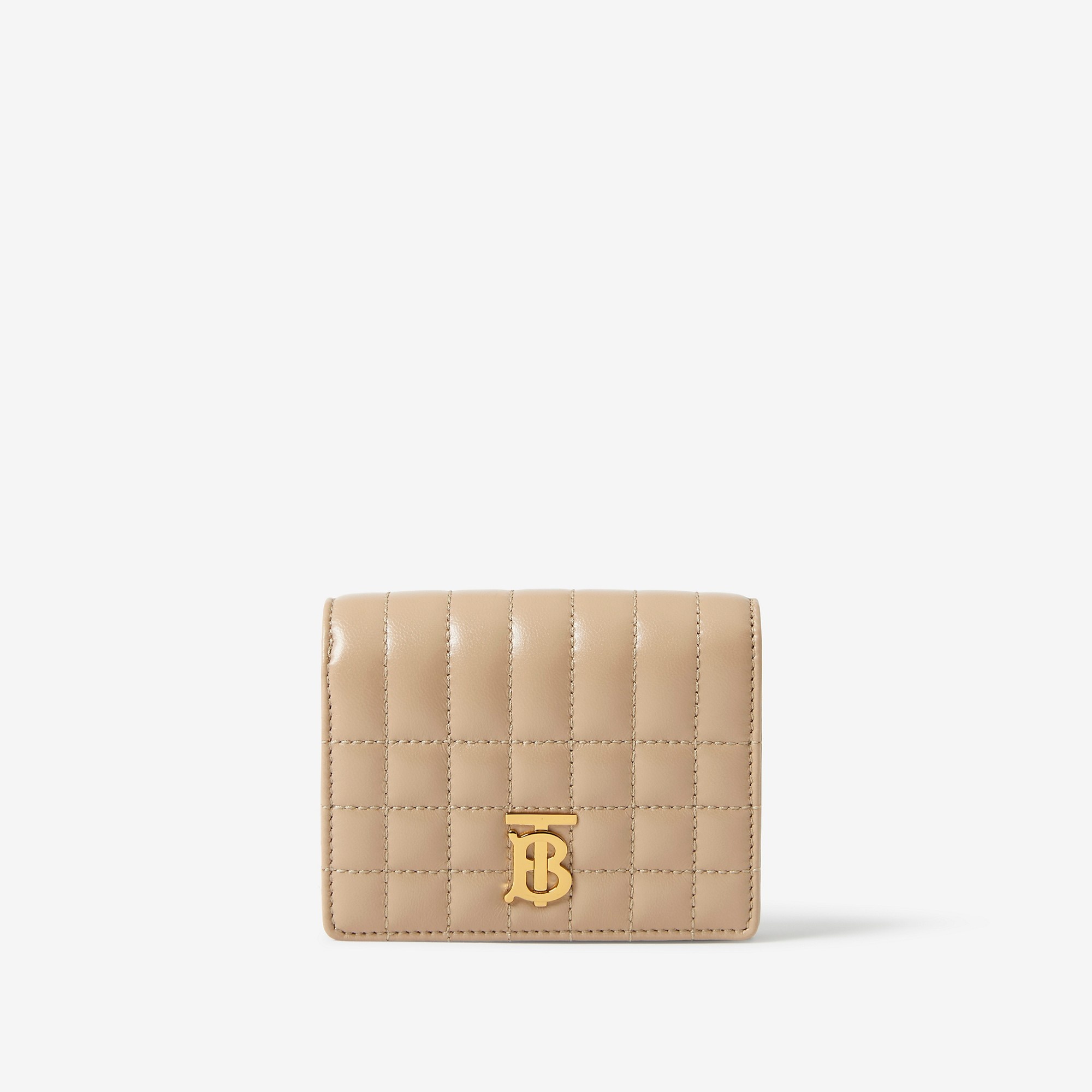 PRODUCT DETAILS A compact folding wallet in quilted Italian-tanned leather, punctuated with a gold-plated Thomas Burberry Monogram. The style features multiple pockets and card slots. - 9.5 x 2.5 x 11.5cm/3.7 x 1 x 4.5in Outer: 100% lambskin Inner: 100% calf leather Lining: 100% polyamide Foldover top with press-stud closure Six card slots Zip coin compartment Note compartment Three slip pockets Hand-painted edges Polished metal hardware Made in Italy Item 80660411