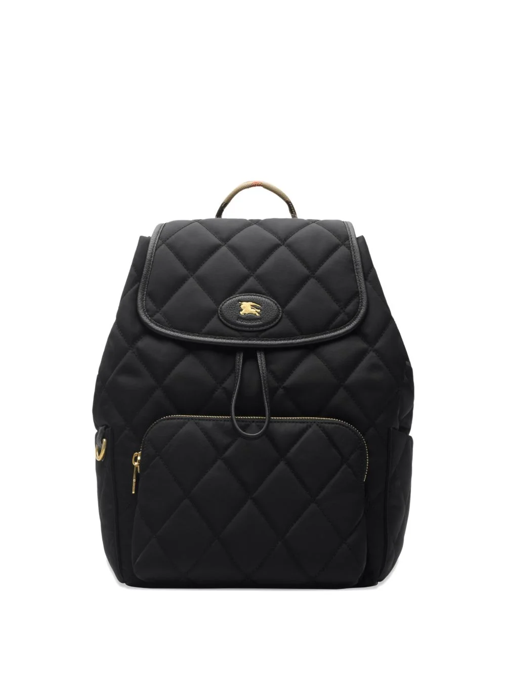 Horseshoe backpack Highlights - Inspired by country pursuits, the horseshoe backpack is made from quilted nylon with burberry check webbing straps in our signature sand beige colourway. the design is detailed with leather trims and our knight stamp, an archival motif first seen on burberry bags in the 1980s. use the d-ring at the side to personalise with charms. - Webbing top handle - Adjustable shoulder straps - Foldover top with drawcord and magnetic closure - Two exterior slip pockets, exterior zip pocket, interior slip pocket - Hand-painted edges - Brushed metal hardware - Leather patch with equestrian knight design at front - Embossed burberry lettering at back - Nylon lining - Comes with a dust bag Imported Composition Outer: Polyamide 100%, Calf Leather 100% Lining: Polyamide 100% SIZE & FIT Measurement HEIGHT 13.58 in(34.5 cm) WIDTH 8.26 in(21 cm) DEPTH 5.11 in(13 cm)