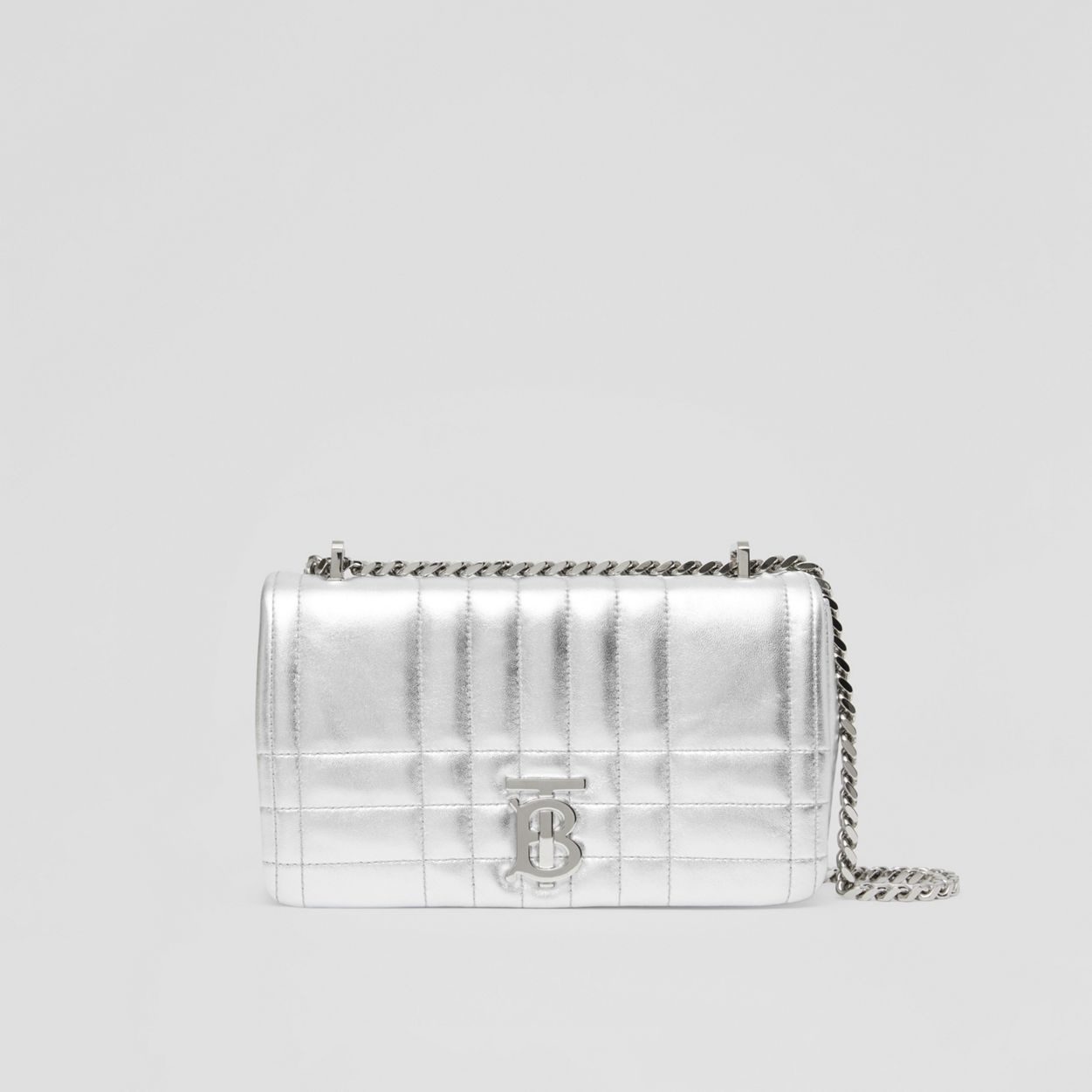 PRODUCT DETAILS A softly structured, quilted runway bag crafted from metallic Italian-tanned leather. The shiny style is punctuated with a polished chain strap and the Thomas Burberry Monogram. Wear it on the shoulder or style as a crossbody. 23 x 6 x 13cm/9.1 x 2.4 x 5.1in Min. shoulder strap drop: 27cm/10.6in Max. shoulder strap drop: 50cm/19.7in Outer: 100% lambskin Trim: 100% lambskin Lining: 60% cotton, 40% polyester Adjustable chain and lambskin shoulder strap One interior slip pocket Foldover top with magnetic closure Hand-painted edges Polished metal hardware Made in Italy 80585501