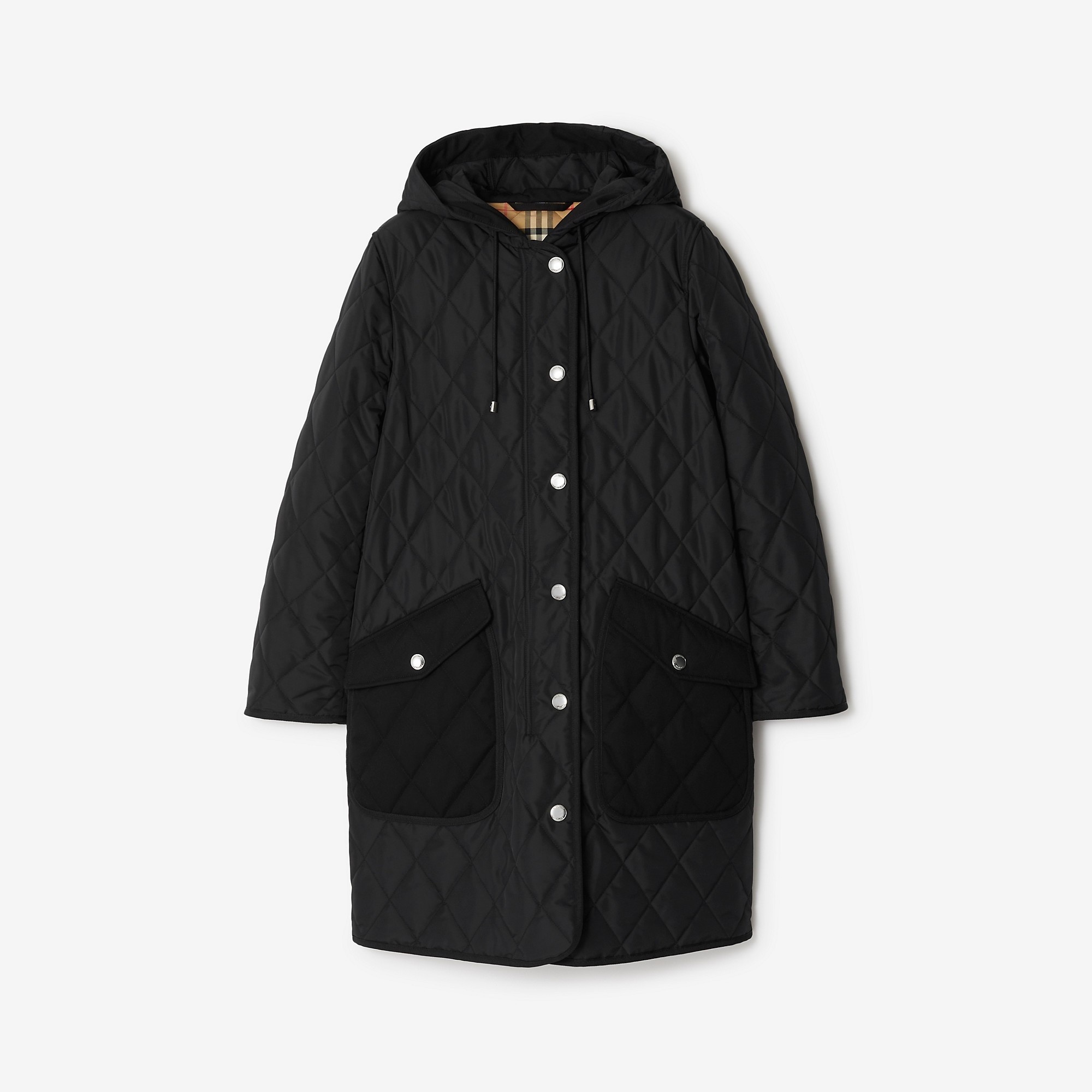 Product Details A quilted coat with 37.5® thermoregulation technology for insulation and breathability. The hooded design is cut to a regular fit and lined in Burberry Check. - Zip and press-stud closure - Drawcord hood - Front press-stud flap pockets - Side press-stud vents - Burberry Check lining - Regular fit. Fits true to size, take your normal size. - Item 80726701 Size & Fit - Length: 93cm/36.6in (size UK S) - Model’s height: 177cm/5ft 10in. Model wears size UK S Fabric & Care - Outer: 100% polyamide - Trim: 100% cotton - Lining: 100% cotton - Pocket lining: 50% cotton, 50% polyester - Filling: 100% polyester - Specialist dry clean - Imported