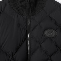 Product Details A jacket in lightweight water-resistant nylon detailed with our check-stitch – a new take on quilted stitching inspired by the iconic house code. Padded with goose down and feathers for warmth, the hybrid silhouette is knitted with a tonal wool-blend collar, hem and sleeves. Cut to a slim fit and finished with an appliqued leather Knight stamp, an archival motif first seen on Burberry bags in the 1980s. - Two-way zip closure - Front zip pockets - Leather patch with Equestrian Knight Design at chest - Comes with a garment bag - Slim fit: this style is cut to a fitted silhouette. Fits true to size, take your normal size. - Machine wash - Item 81182551 Size & Fit - Length: 53cm/20.9in (size UK S) - Model’s height: 175cm/5ft 9in. Model wears size UK S Fabric & Care - Outer: 100% polyamide - Trims: 98% wool, 1% elastane, 1% polyamide; 100% leather; 100% calf leather - Sleeve: 97% wool, 2% polyamide, 1% elastane - Lining: 100% polyamide - Filling: 90% goose down, 10% goose feathers - Wadding: 100% polyester fibres - Imported