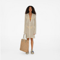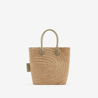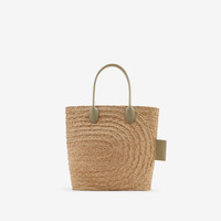 Product Details A tote bag made in Italy from raffia, braided with a curved design representing a ‘B’. The style features smooth leather handles and a label embossed with our logo and Equestrian Knight Design. - Rolled leather top handles - Open top - Hand-painted edges - Embossed Burberry lettering at label - Item 80906551 Size & Fit - 49 x 21 x 42cm/19.3 x 8.3 x 16.5in. Handle drop: 25cm/9.8in Fabric & Care - 100% raffia - Trim: 100% calf leather - Made in Italy