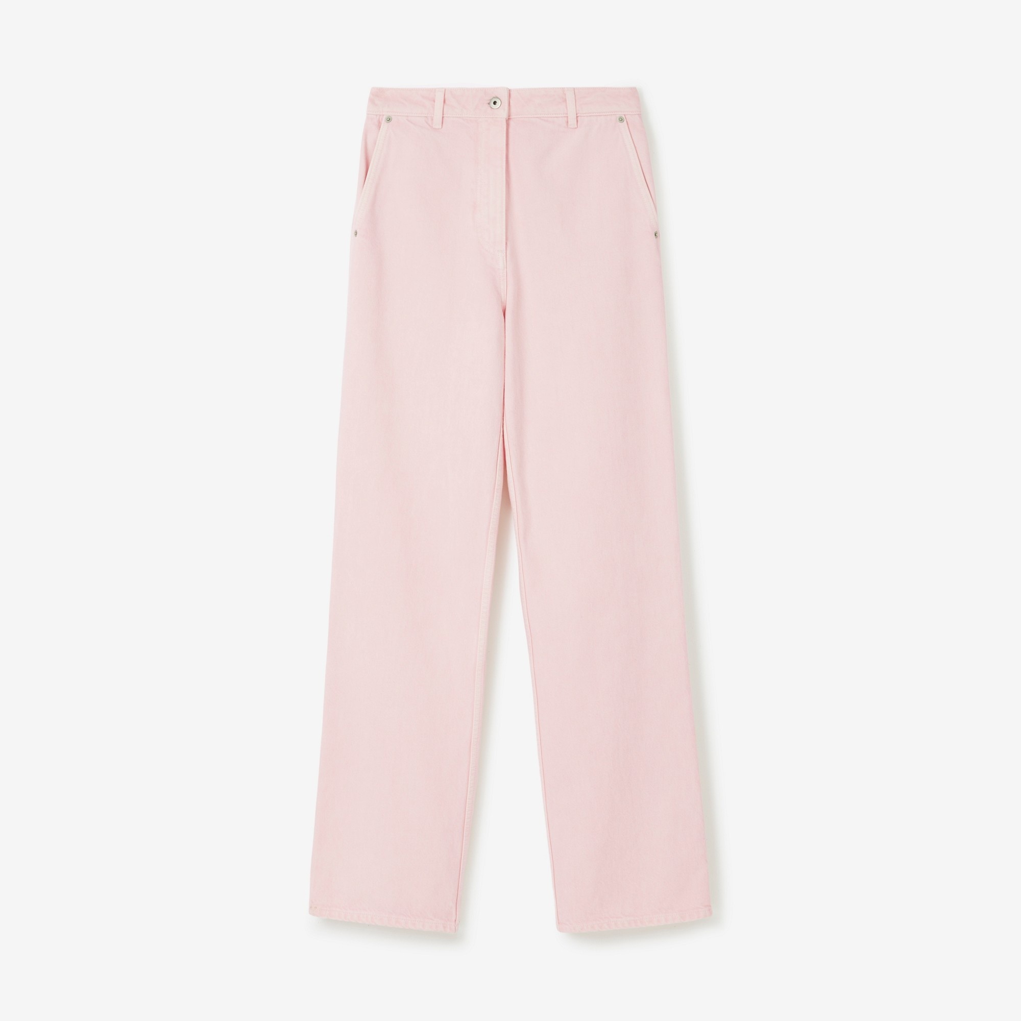 PRODUCT DETAILS Mid-rise jeans designed for our summer collection, detailed with a leather patch embossed with our logo. - Inside leg length: 85cm/33.5in. This is based on a size UK 6. - Model’s height: 177cm/5ft 10in. Model wears size UK 8. 100% cotton Trim: 100% calf leather Heavyweight denim Mid rise, relaxed fit Button and zip fly closure Leather patch with embossed Burberry lettering at back Machine wash inside out Made in Italy Item 80731141